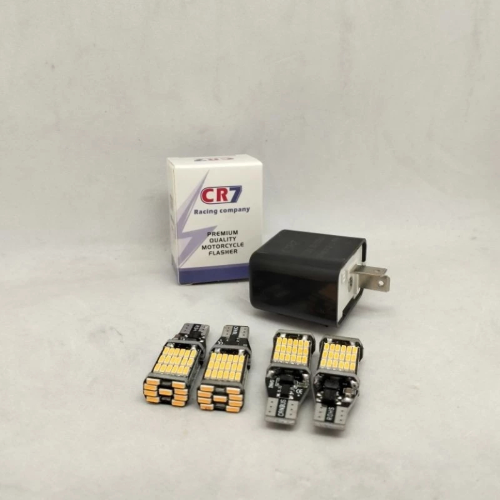 Paket Flasher Sen CR7 100 PERSEN Original Plus 4 Pcs Lampu Sein Sen Dajjal 45 Mata Super Terang