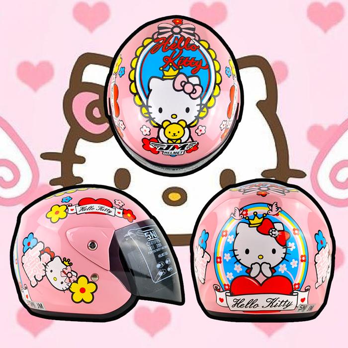 HELM ANAK SNI 7 8 9 10 11 12 13 14 TAHUN HALF FACE MOTIF KARAKTER - HELO KITY PINK