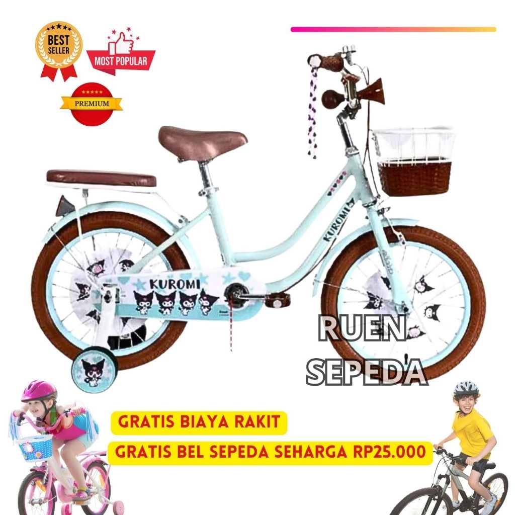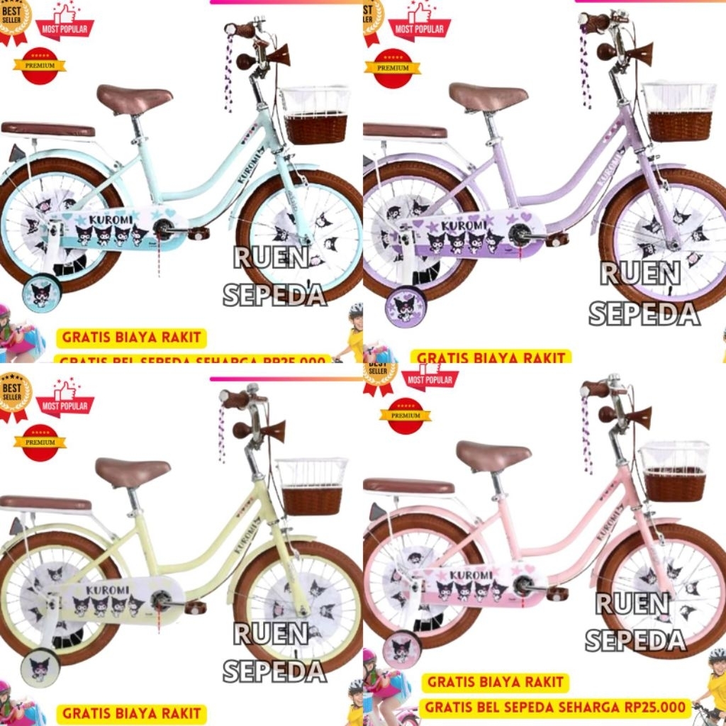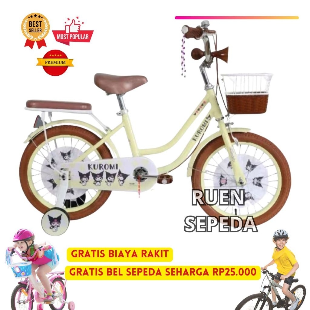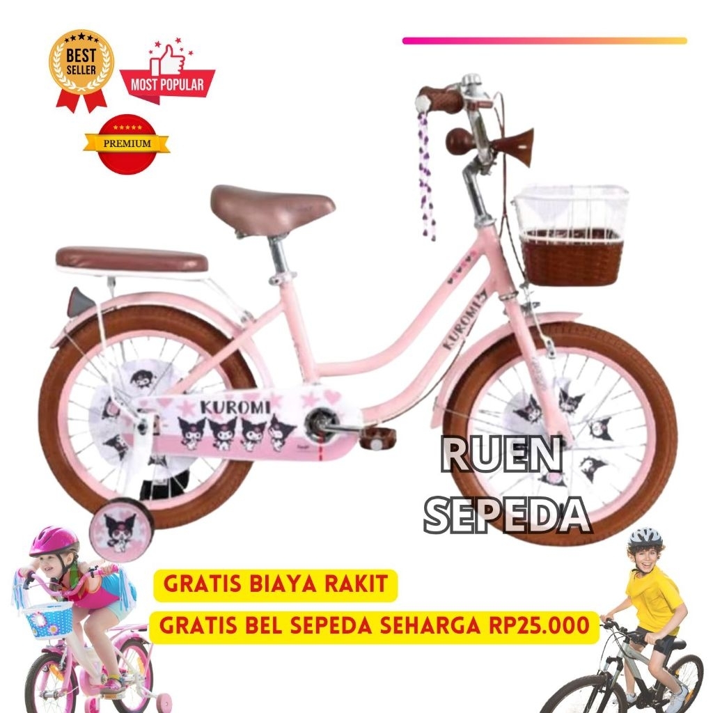 Sepeda Anak Perempuan Roda Empat Mini KUROMI 12 16 18 Inch