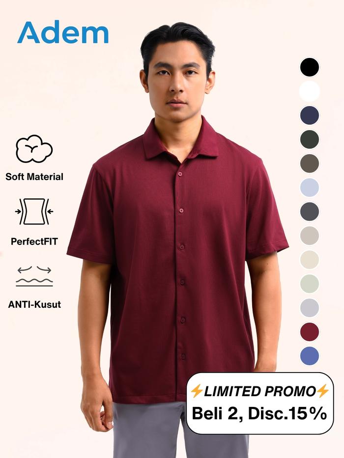 Klotifai - Adem Ss Maroon - Kemeja Lengan Pendek Pria | Lembut, Nyaman, Anti-Kusut - S