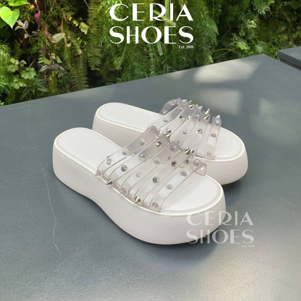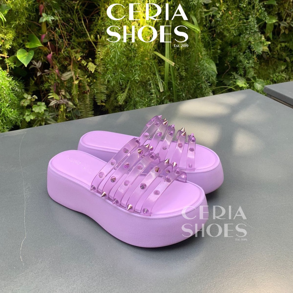 Sandal Slop Wedges Wanita Import MLS Becky Punk Hak Platform Tinggi 5 Cm Bahan Jelly Karet Tebal Sol Anti Slip