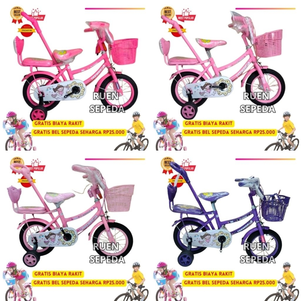 Sepeda Anak Perempuan Roda Empat Dorongan Stir Pompa Tremor Velion 12 Inch