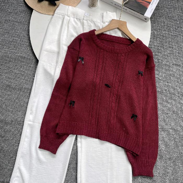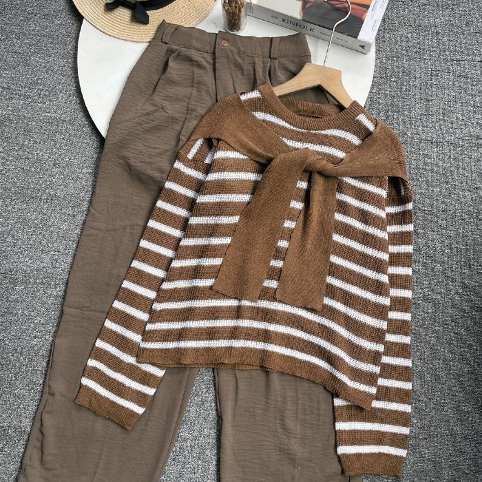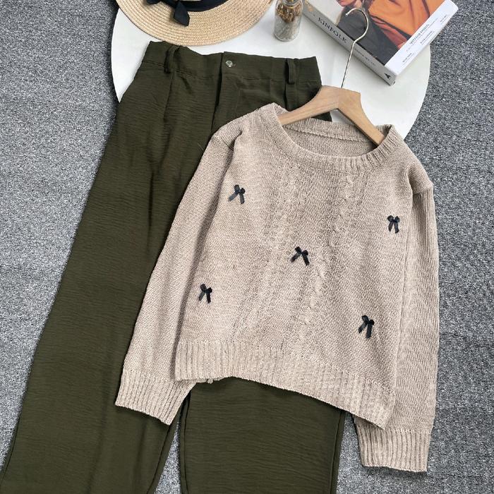 VIENETTA.ID - ONESET SETELAN WANITA CABLE RAJUT KOREAN STYLE MIX KULOT OUTFIT WANITA CEWEK REMAJA BAJU ATASAN PITA COQUE