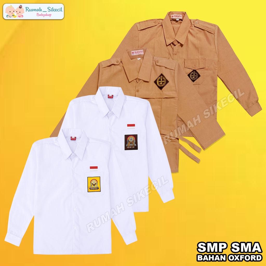 Baju Seragam Sekolah Putih Coklat Pramuka Panjang SMP MTS SMK SMA Kemeja Putih Lengan Panjang SMP SMA Anak Laki Laki Perempuan Unisex