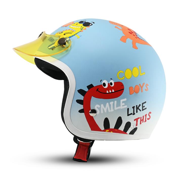 HELM BOGO MOTIF ANAK KARTUN DINO SNI UNTUK ANAK USIA 2THN-7THN - DINO BIRU, DATAR HITAM