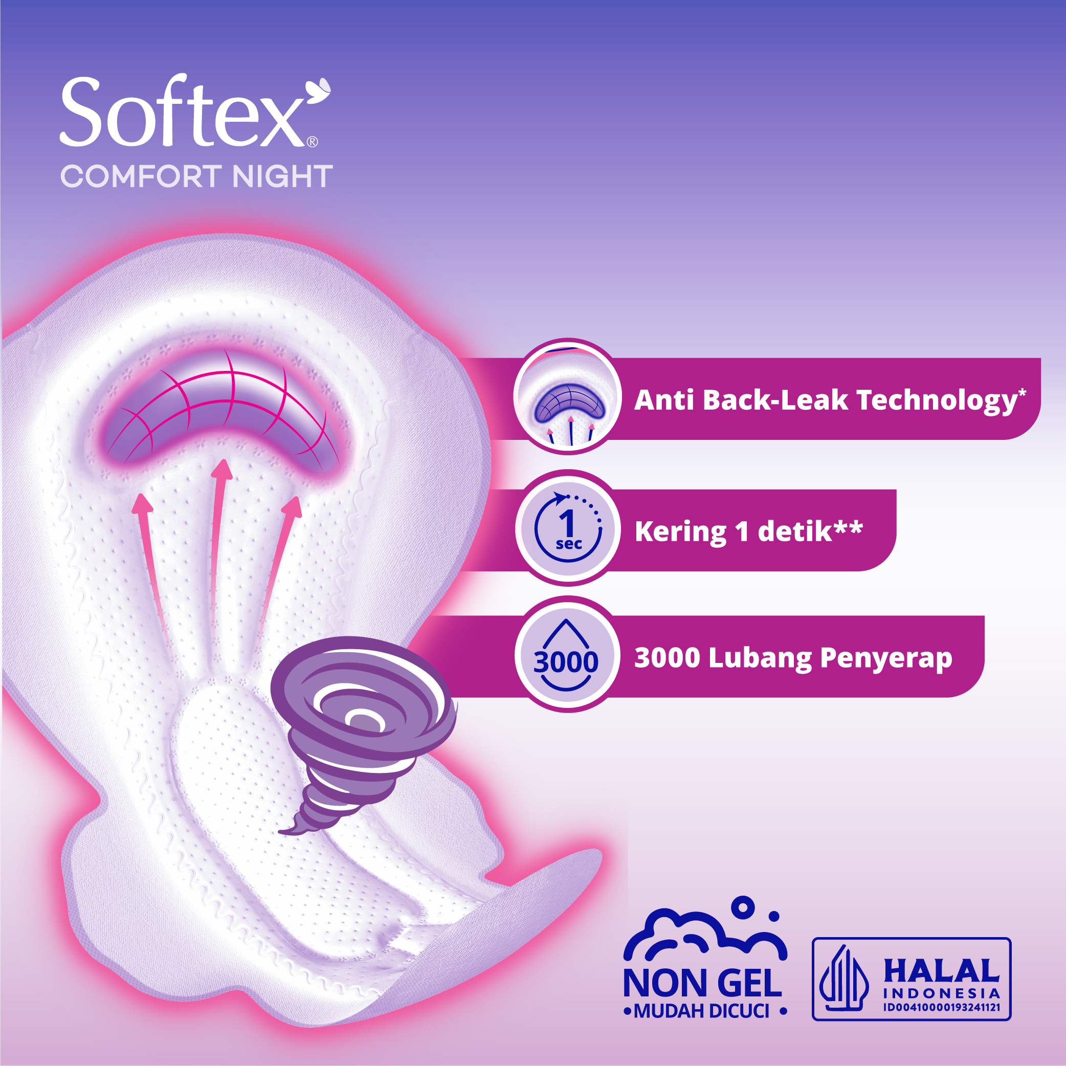 Softex Comfort Night 2in1 12 pads - Pembalut Malam - Spesial Bulan Ungu