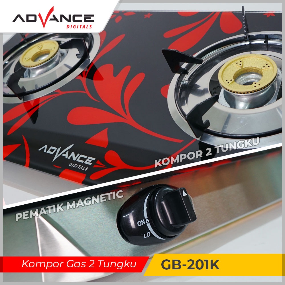 Kompor Gas Advance 2 Tungku K608S Turbo Kaca Portable Komplit Murah Quantum Tanam Rinnai Miyako Stainless Sanex 1 Tungku