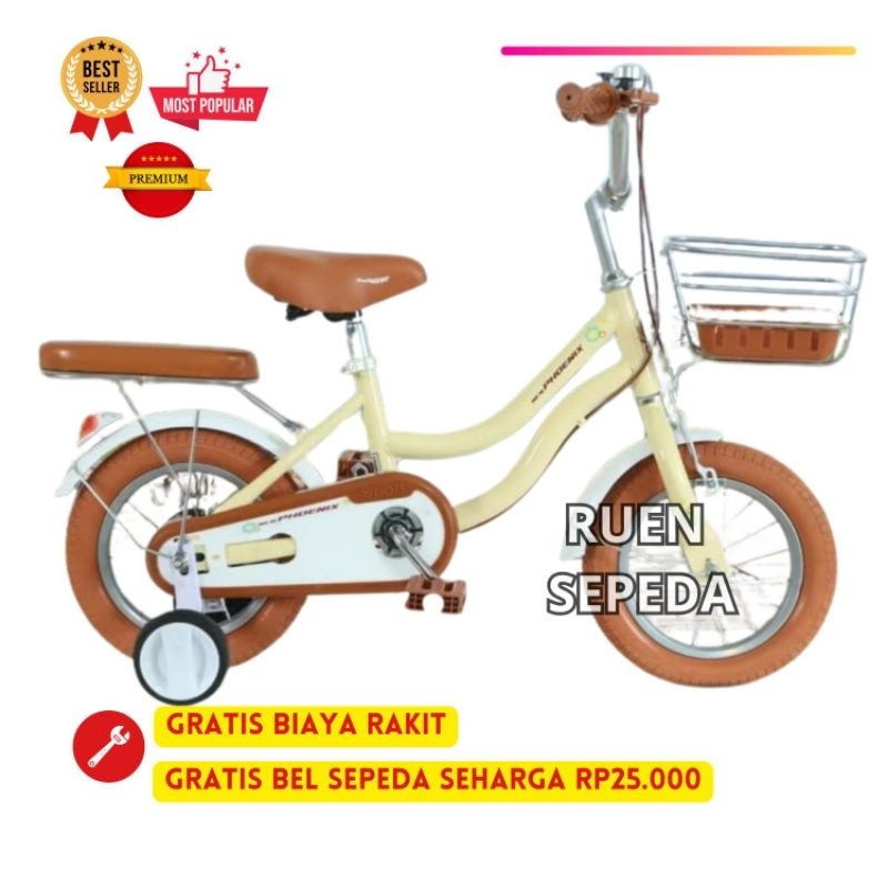 Sepeda Anak Perempuan Roda Empat Mini Phoenix 12 16 18 Inch Sepeda Anak Premium Usia 2th 4th 6th