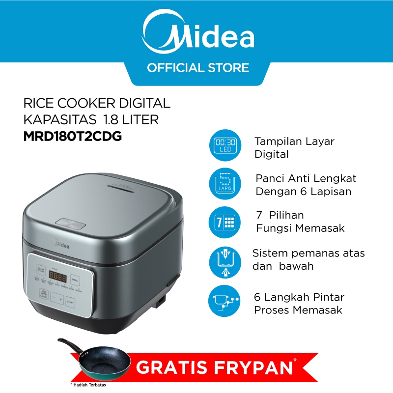 RICE COOKER DIGITAL LOW WATT MIDEA 1.8L [GRATIS FRY FAN] 1.8 L MAGICOM MRD180T2CDG MAGIC COM TOUCH CONTROL CICILAN
