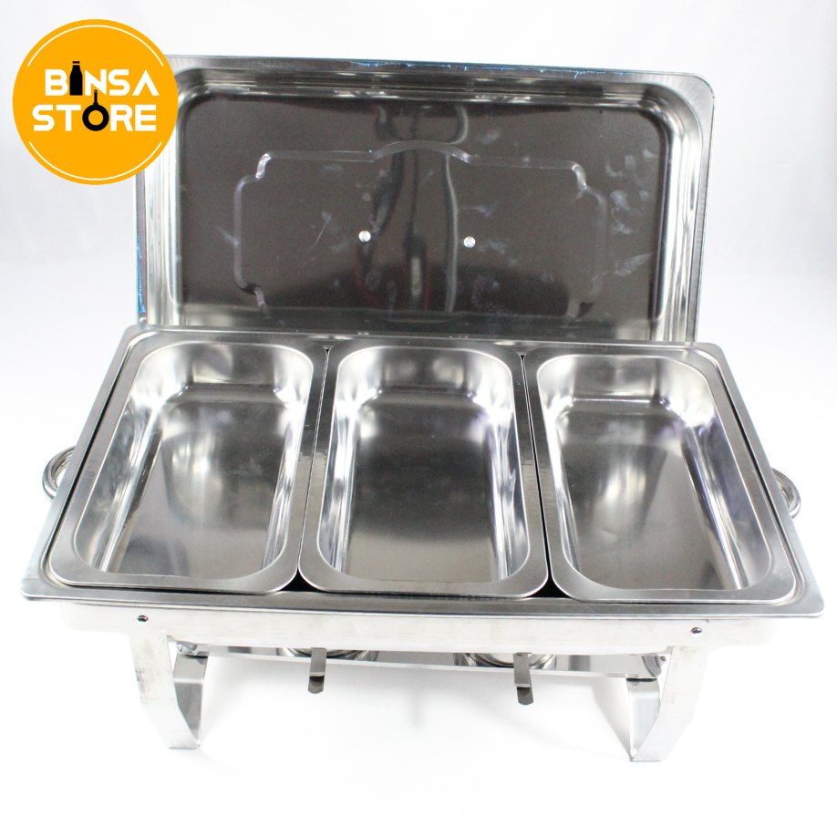Pemanas Makanan Stainless 2 3 Sekat Prasmanan Chafing Dish Catering Restoran Murah BINSA - ACS