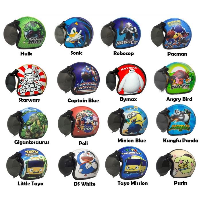 HELM BOGO ANAK BALITA FULL KULIT PLUS KACA CEMBUNG MOTIF KARAKTER