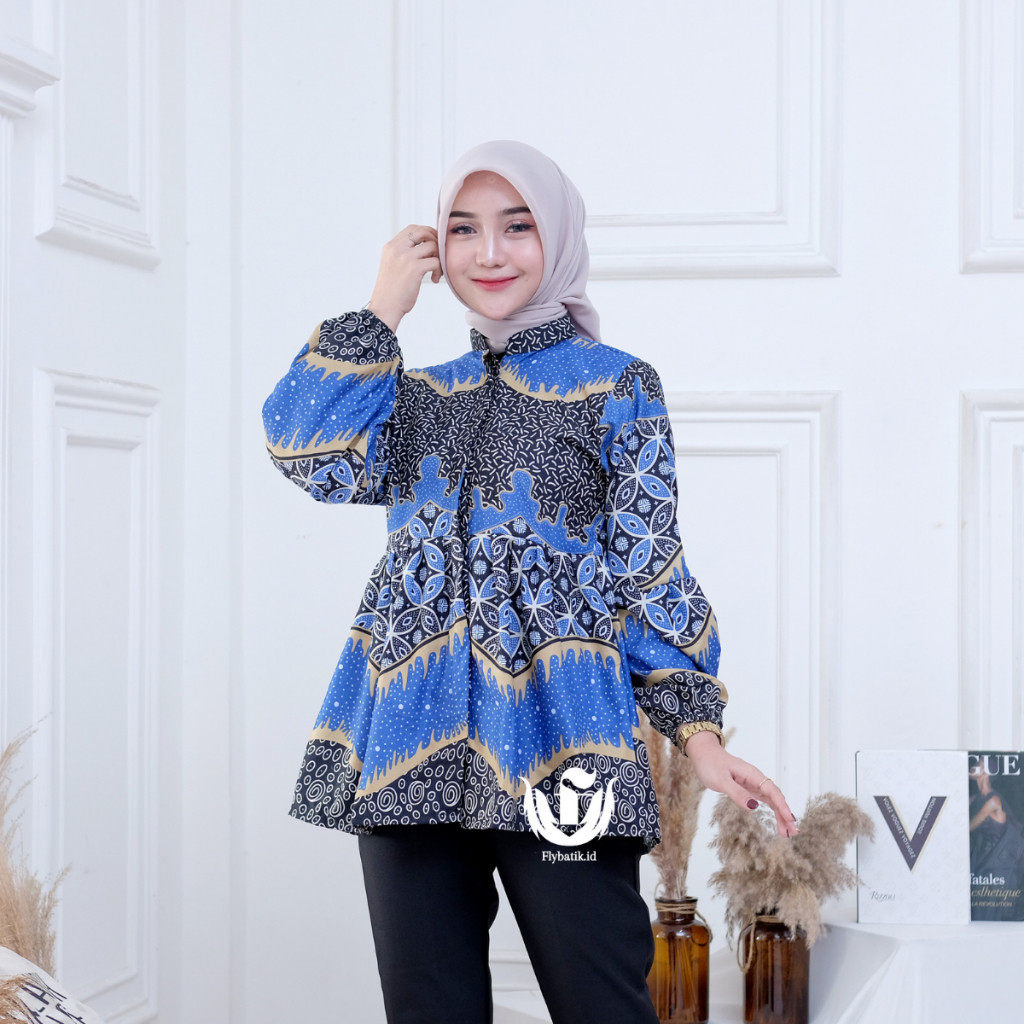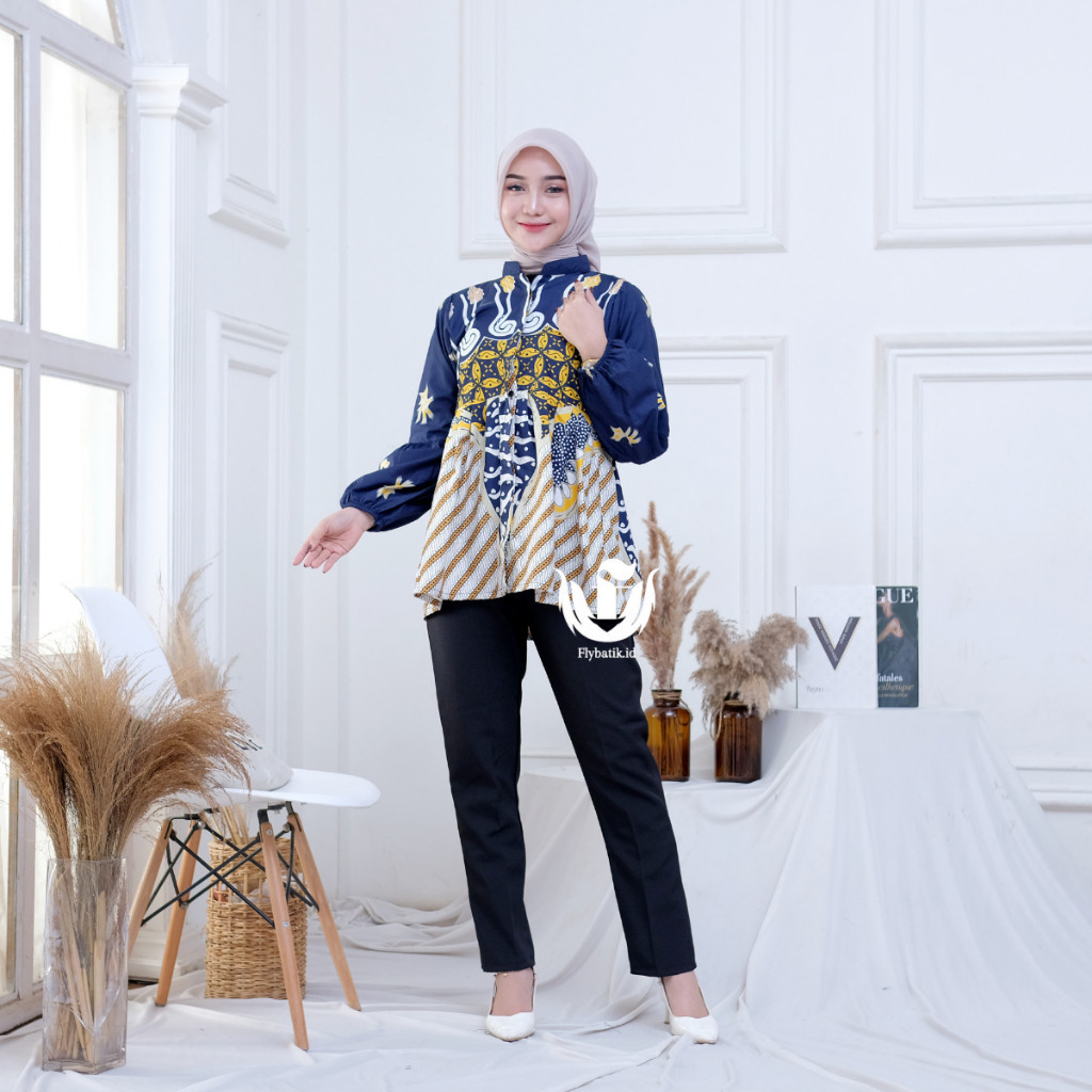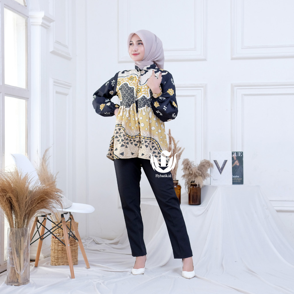 Flybatik.id Atasan Baju Blouse Batik Wanita Jumbo Modern Kerja Lengan Balon M L XL XXL