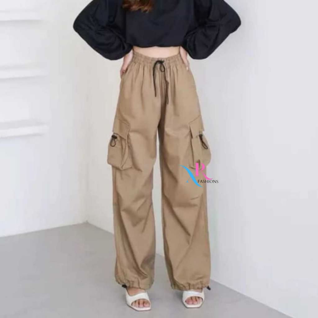 CELANA CARGO WANITA CARGOSO - CELANA CARGO WANITA HIGHWAIST LOOSE PANTS TROUSER KOREAN STYLE - CELANA GUNUNG WANITA