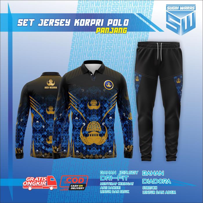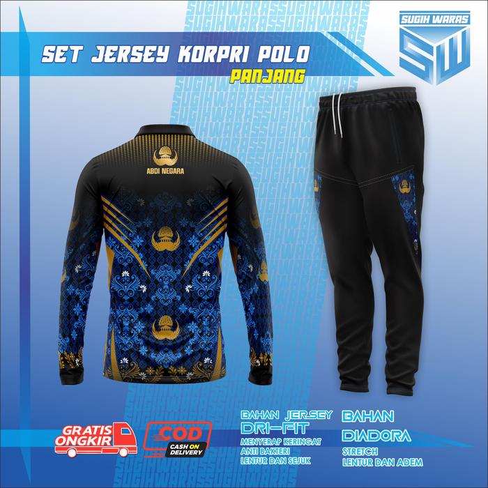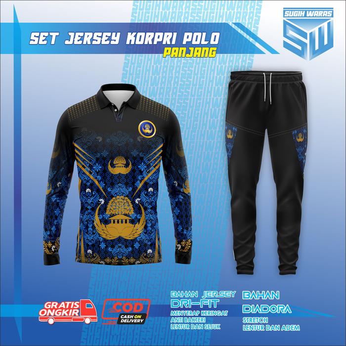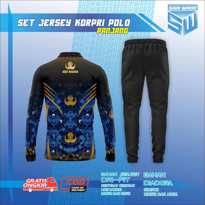 SUGIH WARAS SET JERSEY POLO KORPRI PANJANG OLAHRAGA RUNNING SPORT Setelan Baju Celana Pria