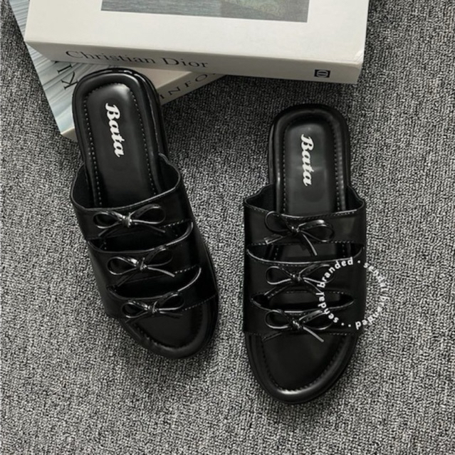 Promo BATA Sandal wanita wedges 5cm Sandal slop pita Sandal wedges cewek slide anti licin sendal tinggi
