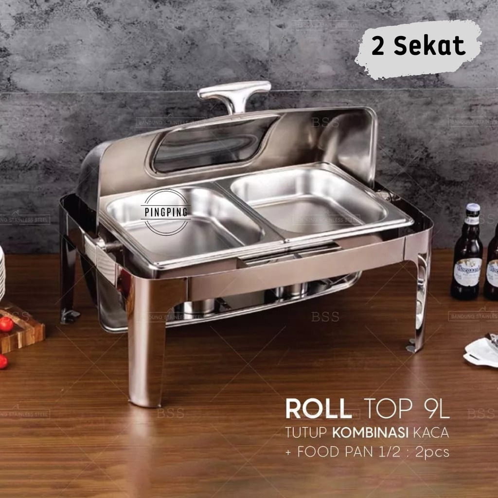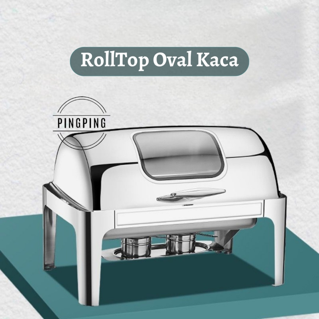 PROMO Chafing Dish/RollTop Segi Oval Kaca Stainlees Steel Kualitas Tinggi 9L