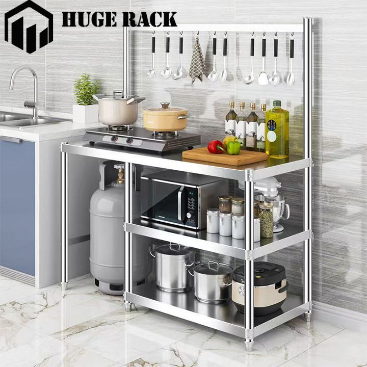 Meja Kompor Stainless Steel Meja Kompor Gas 2 Tungku Rak Dapur Serbaguna Meja Dapur Multifungsi