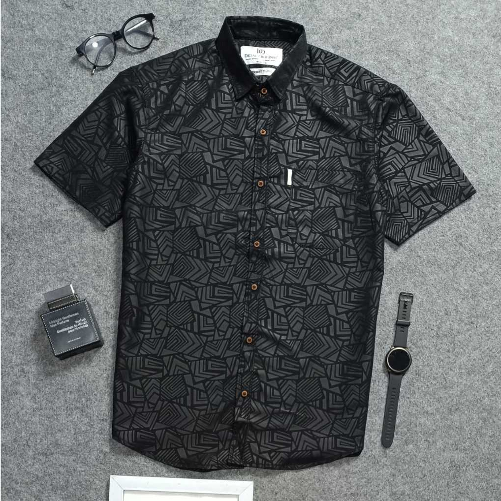 Detak Original Kemeja Embos Pria Lengan Pendek Motif Etnik Hitam