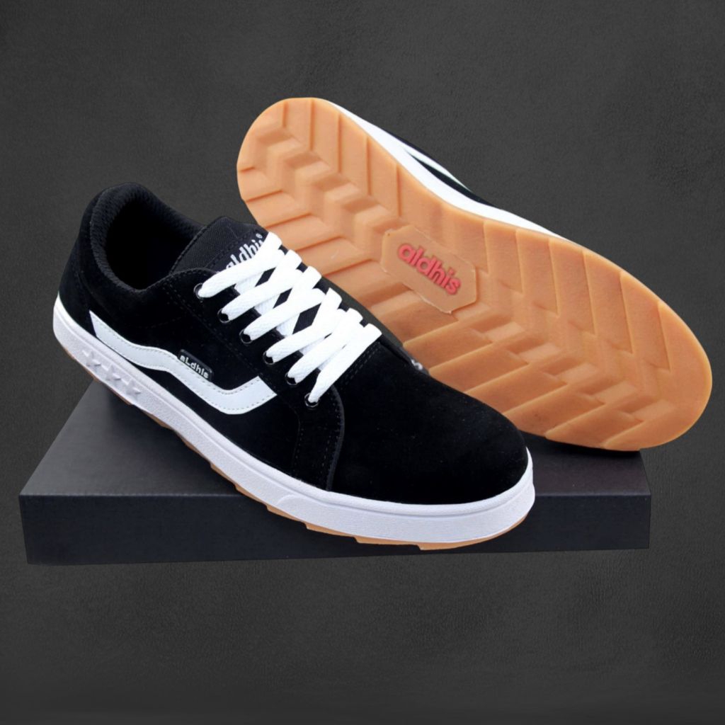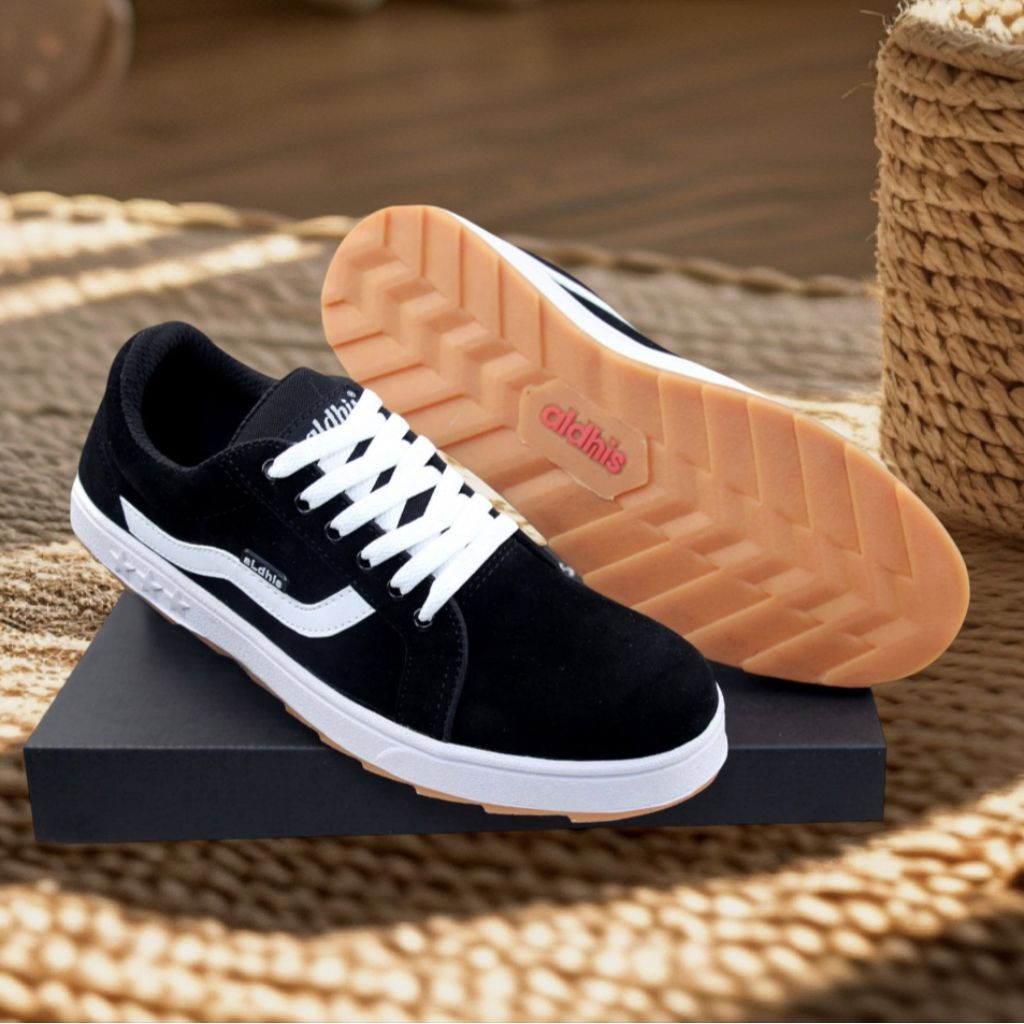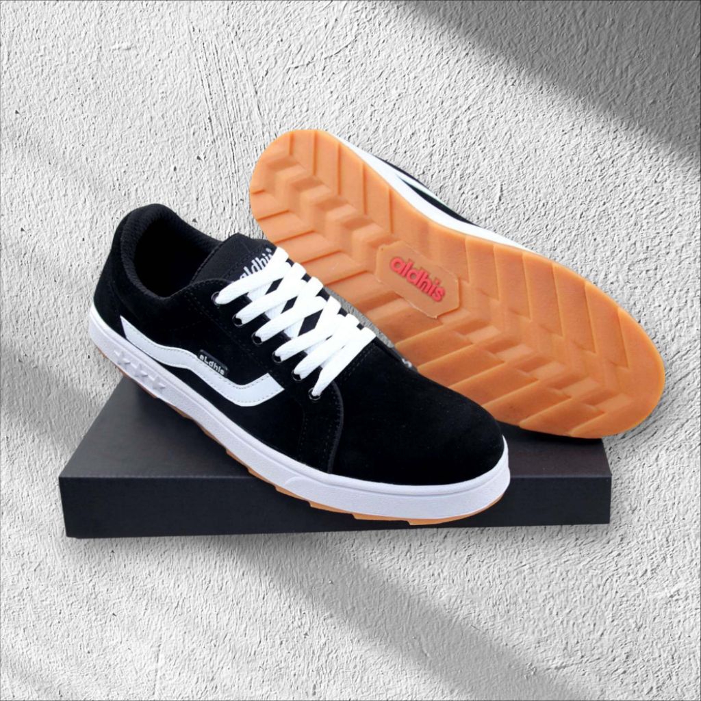 Aldhis Low Black Sneakers Hitam Putih Sepatu Pria Keren Kets Casual Cowok Trendy Antislip