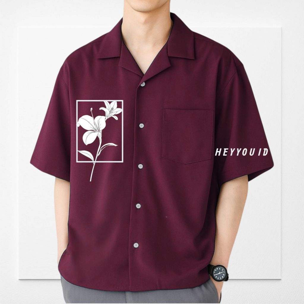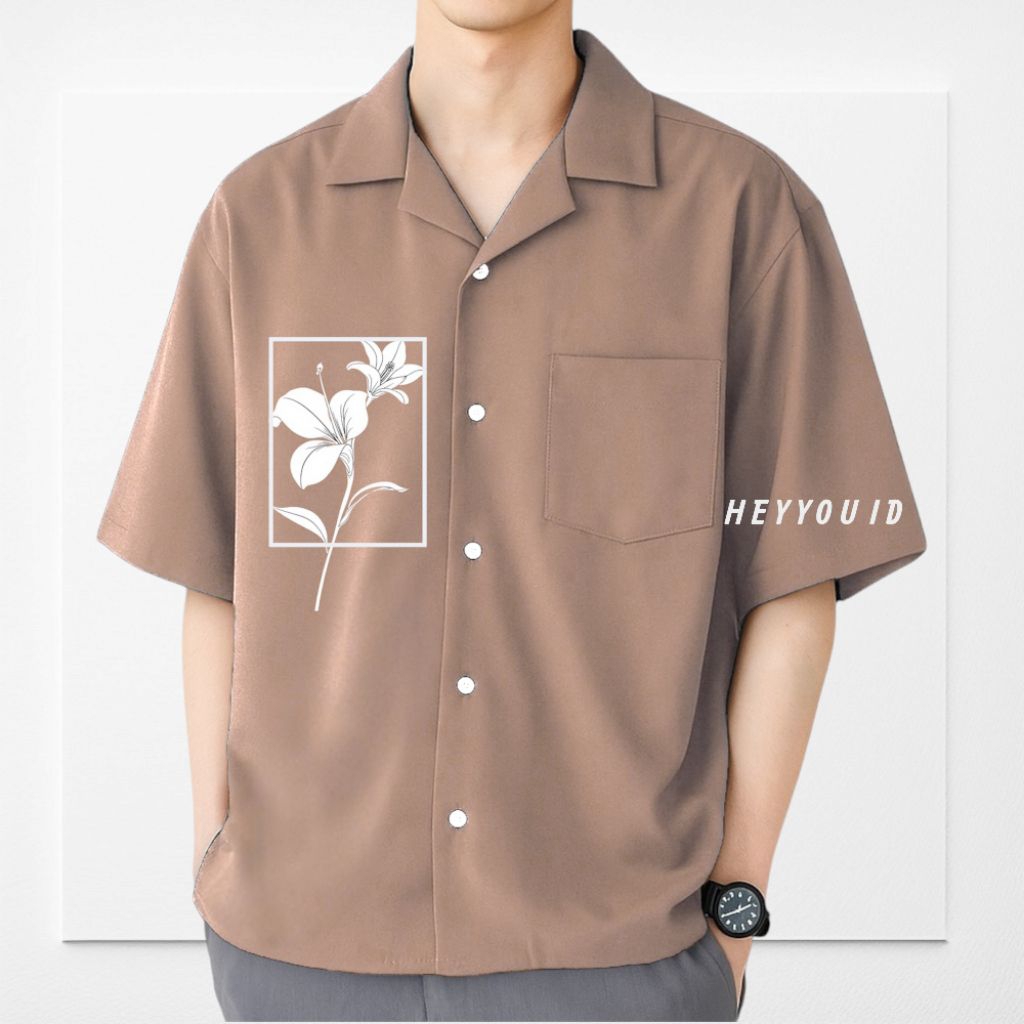 Kemeja Vintage Pria Lengan Pendek Motif Bunga Lily Korean Style Bahan Katun - Kemeja Polos Terbaru