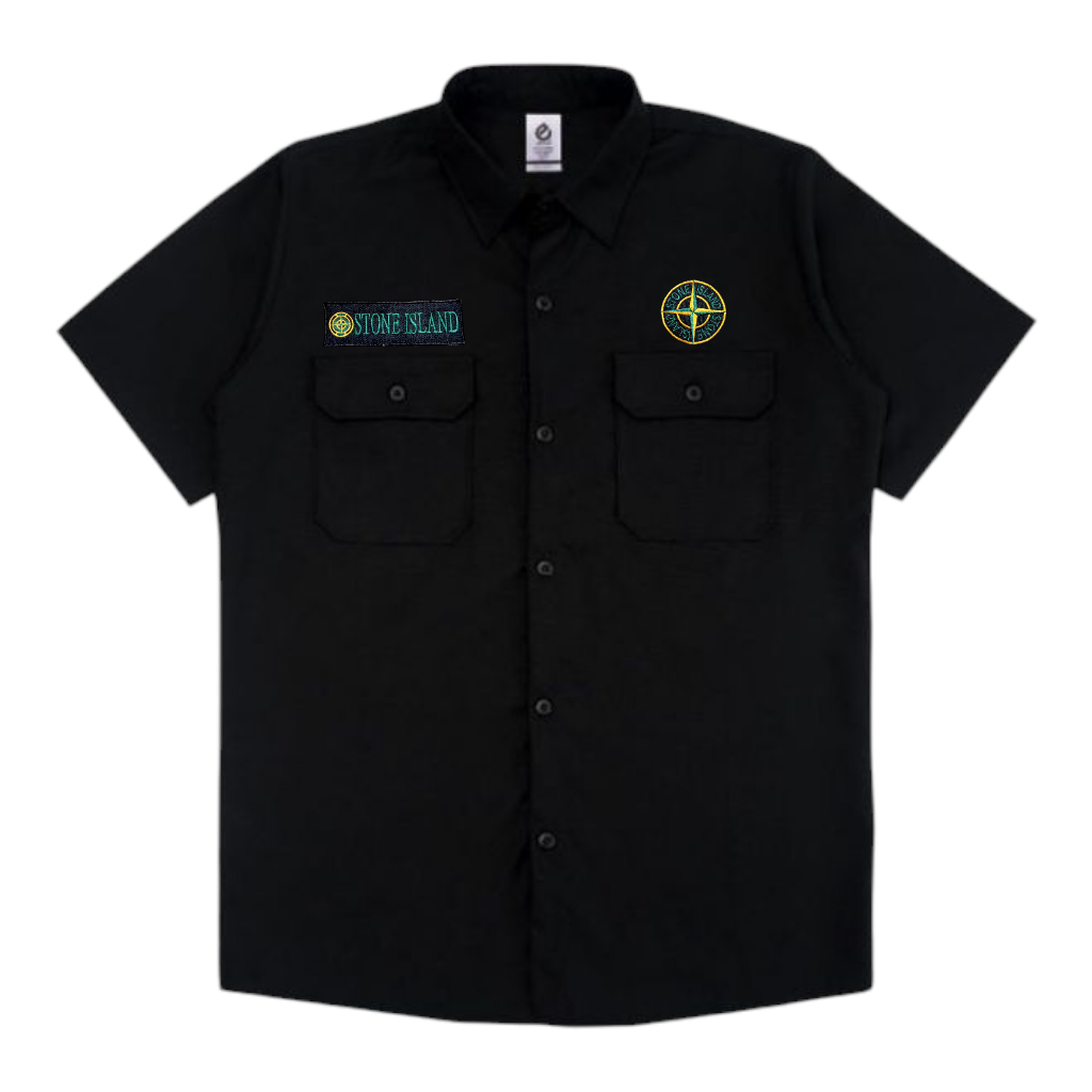 Kemeja Pria Workshirt Top Man Lengan Pendek Casual Bordir Skena Hitz Tebal Kerja