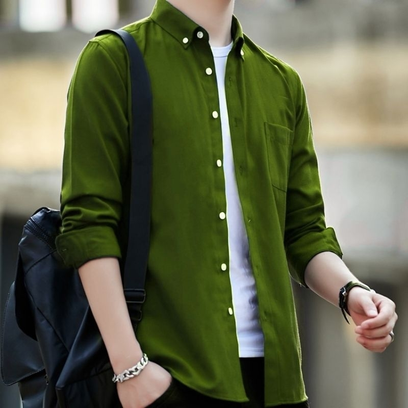 NAUGTY - Kemeja Polos Pria Lengan Panjang Terbaru Hem Cowok Dewasa Baju Distro Katun Kekinian
