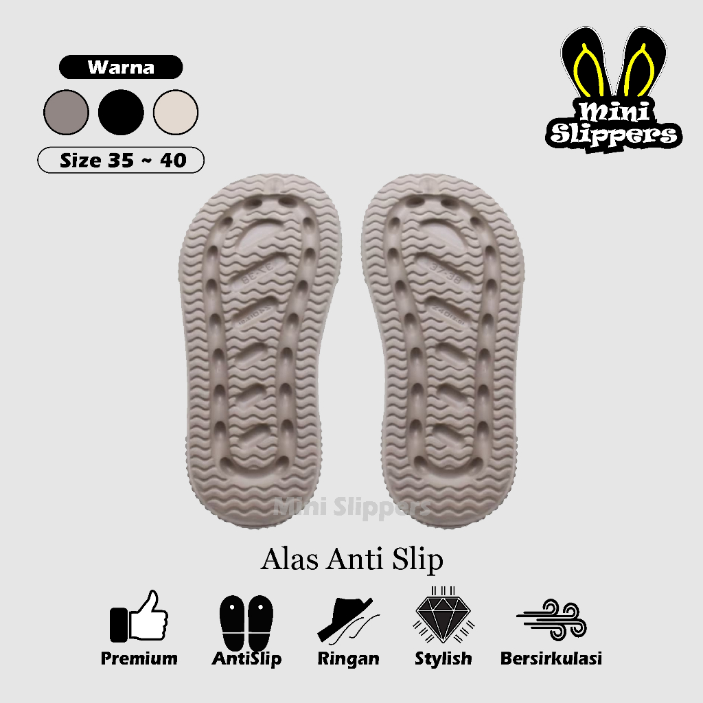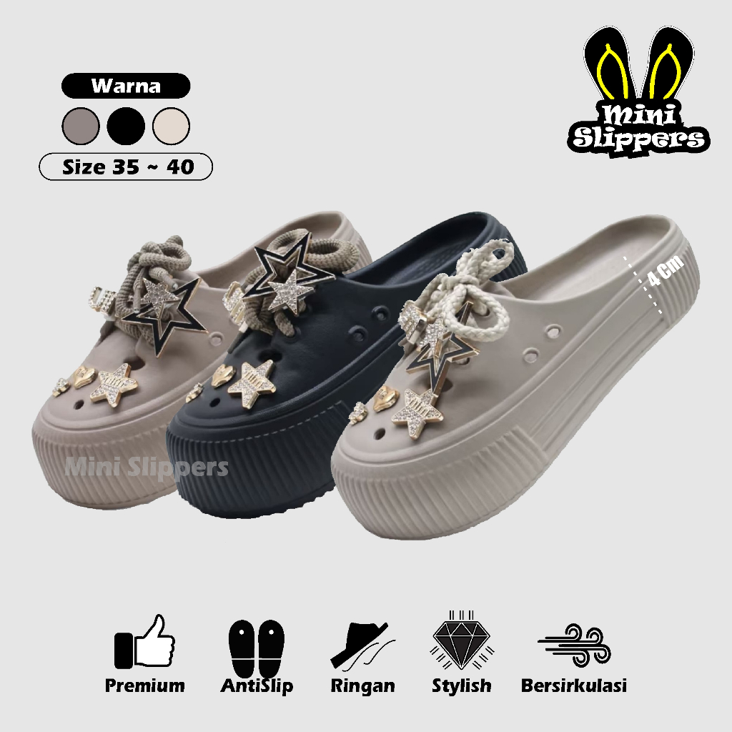 Sandal Selop Wanita Tinggi 4cm Bahan Karet EVA Anti Licin Motif Tali Bintang Terbaru