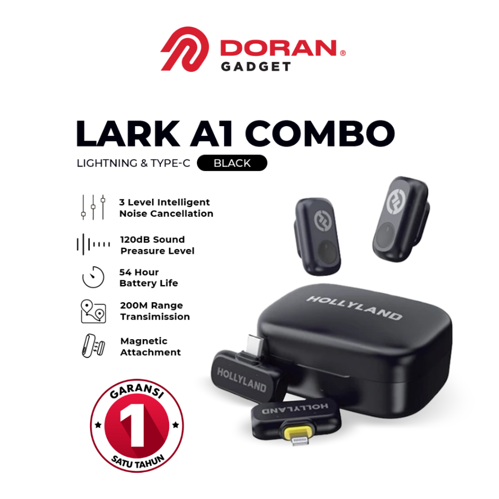 Hollyland Lark A1 Combo / Duo / Mini Duo / Type-C / Lightning Microphone - Garansi Resmi 1 Tahun