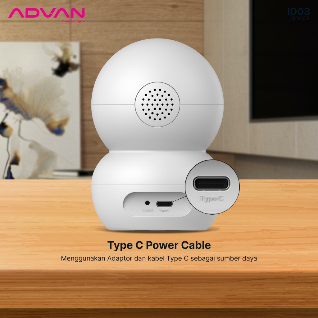 ADVAN ipcam ipc01 Smart AI CCTV Camera Indoor ID3 IP Cam 3MP 2 Wifi DVR Onvif PTZ Type C 1/3" CMOS