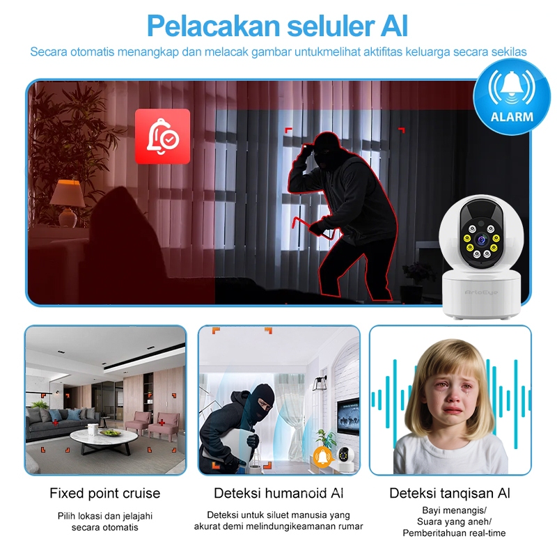 ArloEye IP Camera SMART WIFI CCTV 3MP Indoor 360° HD 2K Motion Detect Two-Way Audio Probe PTZ View Jarak Jauh