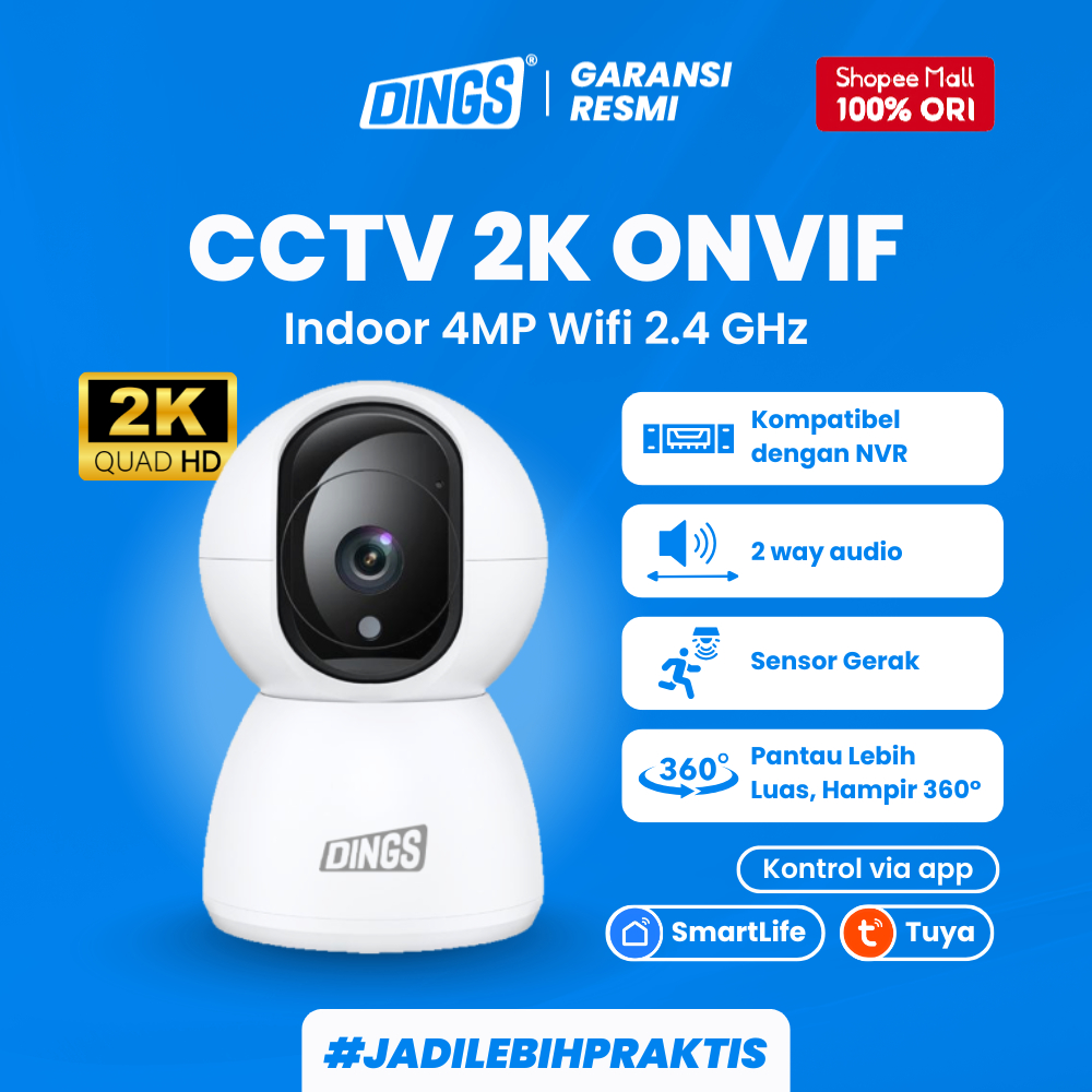 DINGS IP Camera Smart CCTV WiFi Indoor 2K Super Full HD ONVIF – Support NVR & IoT Smart Home