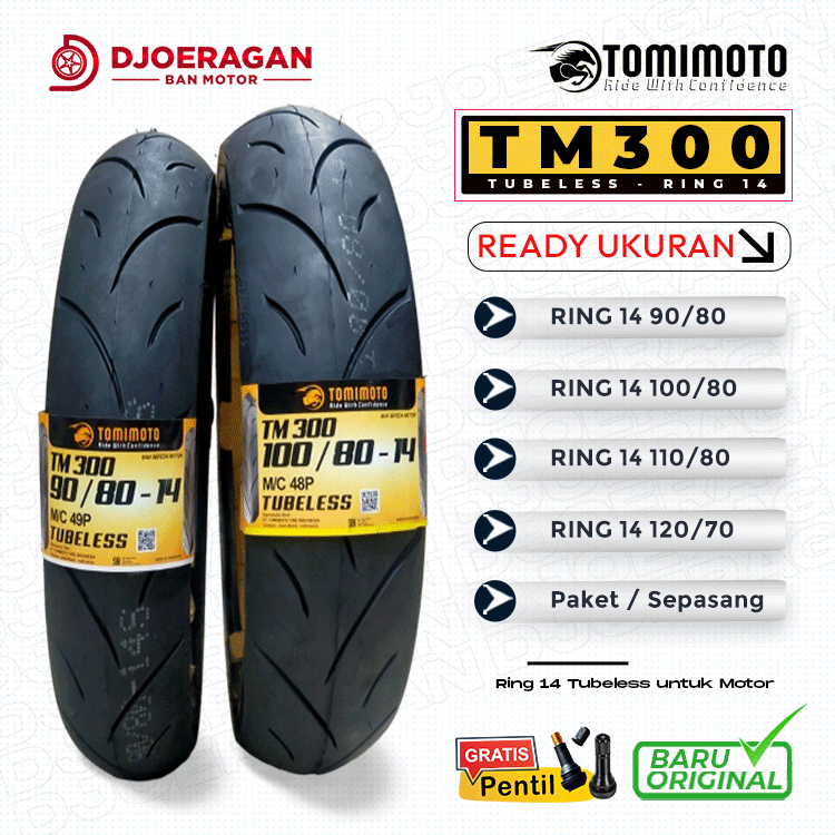 [Star] Ban Motor Matic Tubeless Tomimoto Tm300 Ring 14 Ukuran 90/80 100/80 110/80 120/70 Beat,Mio,Vario,Pcx