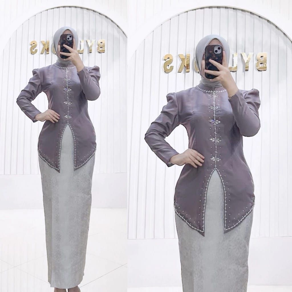 Alana kurung melayu songket - baju setelan kurung melayu wanita terbaruuu Panjang Satin Silk Dewasa Atasan setelan songket