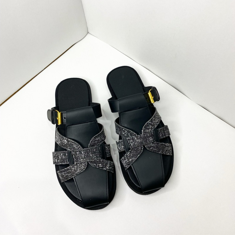 Sandal Affera Sendal Brongsong wanita kanvas hitam dan putih terbaru