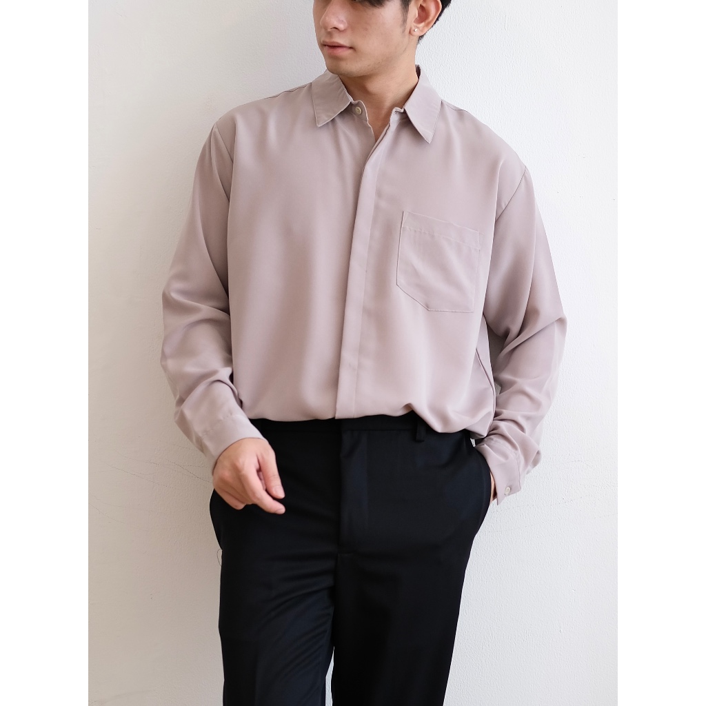 COZYCLUB Relaxed Oversized Shirt | Kemeja Polos Oversize Pria Lengan Panjang | 121