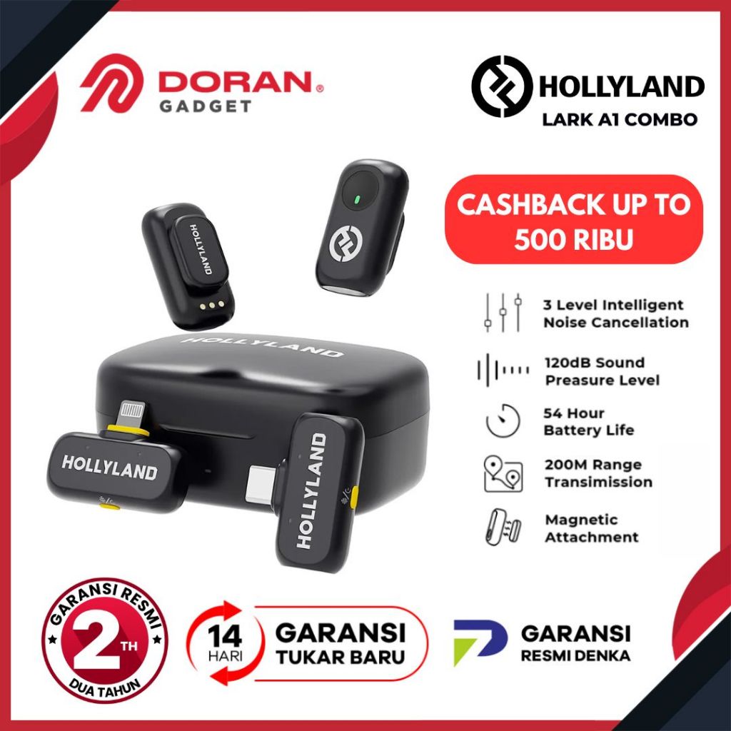Hollyland Lark A1 Combo - Mini Duo Type-C Lightning Microphone - Garansi Resmi 2 Tahun