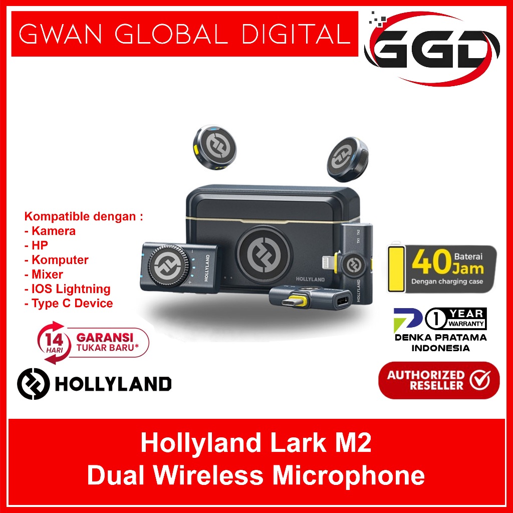 Hollyland Lark M2 Duo All-In-One Dual Wireless Lavalier Microphone Lark M-2 for Camera Android Iphone & Type C Device