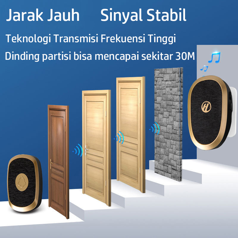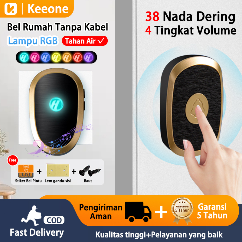 2024 Bel Rumah Tanpa Kabel Bel Pintu Rumah Wireless Waterproof Lampu Rgb 38 Ringtone 1 Receiver