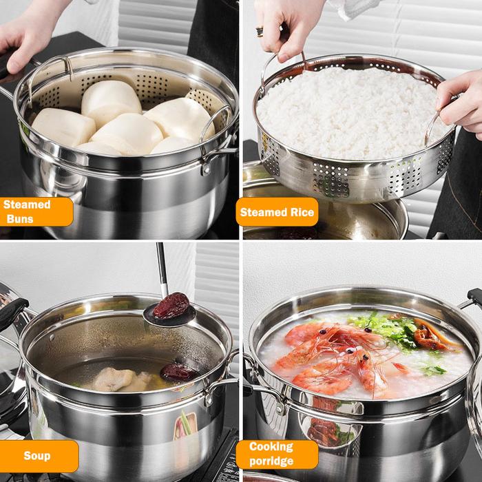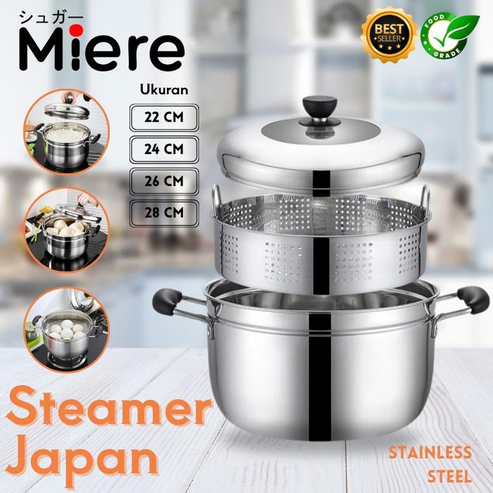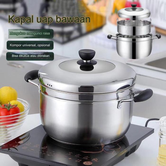 Mierehome Panci kukusan tutup kaca ukuran besar Panci Kukus 2 Susun Panci Kukus Stainless Steel Dandang - 22CM