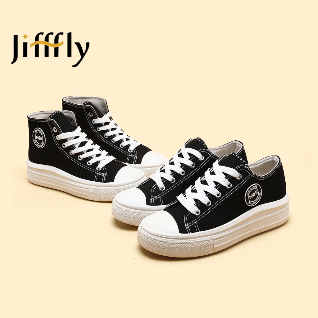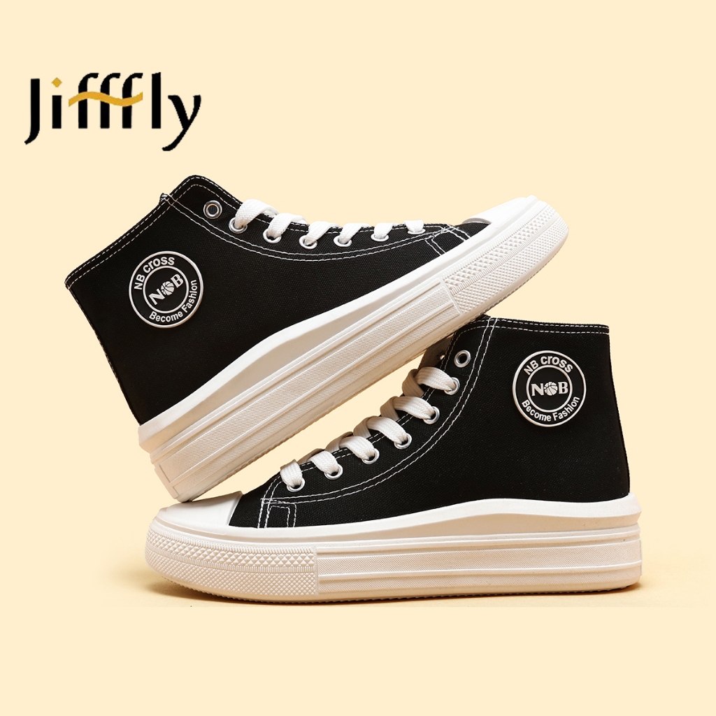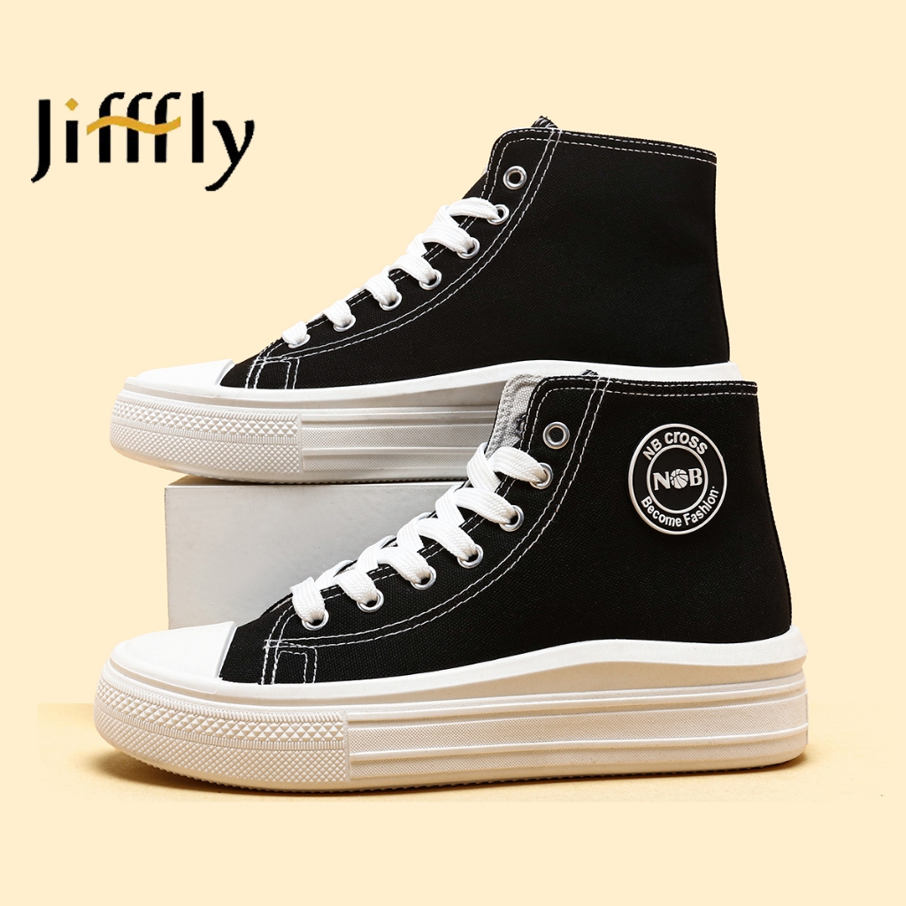 JIFFFLY Sepatu Canvas Wanita High Top - Sneakers Kasual Trendy - Sepatu Sekolah & Harian - Size 36-40
