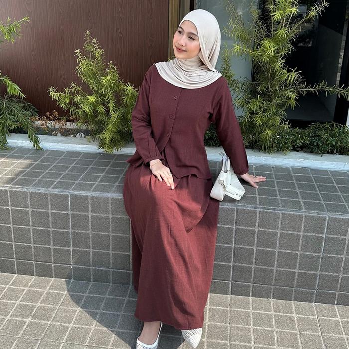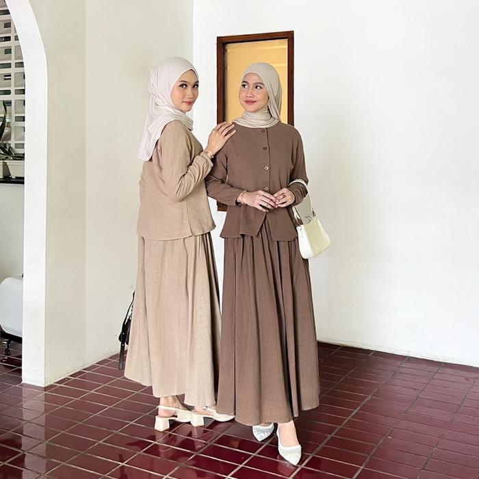 YEPPUOUTFIT - SUNGMIN ONE SET | SETELAN WANITA BLOUSE DAN SKIRT FEMINIM STYLE NYAMAN CANTIK - MOCCA, BIG