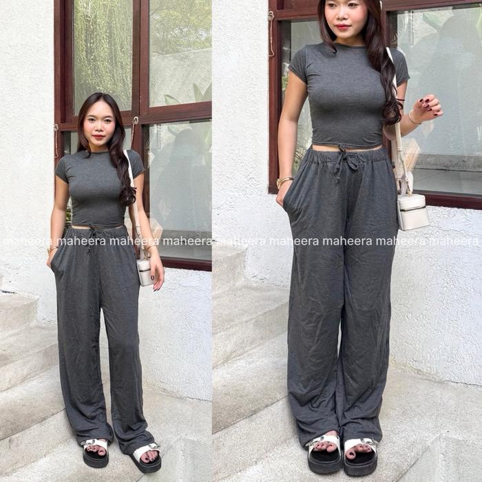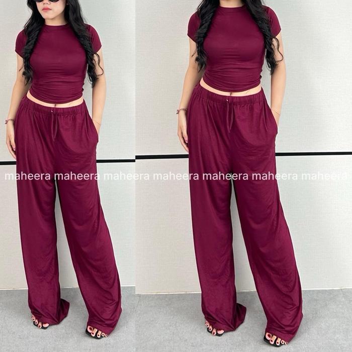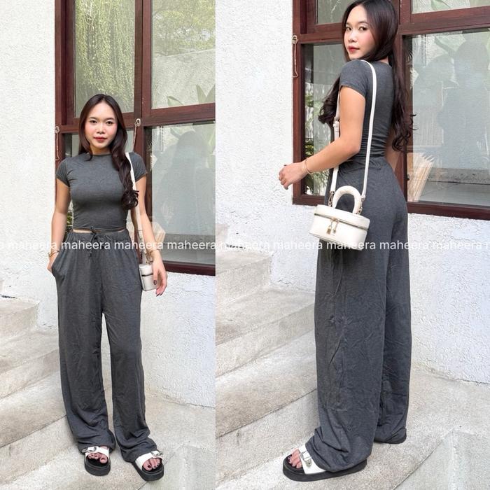 MAHEERA - HANIA ONE SETELAN SPANDEK PREMIUM ATASAN + LONG KULOT CELANA PANJANG WANITA KEKINIAN - HITAM
