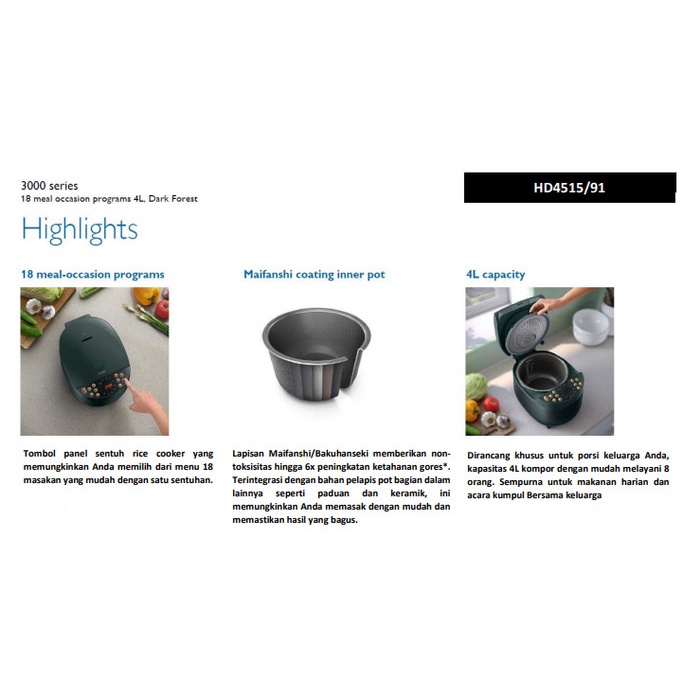 Philips Hd4515/91 Rice Cooker 1.8 Liter 18 Menu/Magic Com/Penanak Nasi/Penghangat Nasi/Pemanas Nasi/Original/Garansi Res