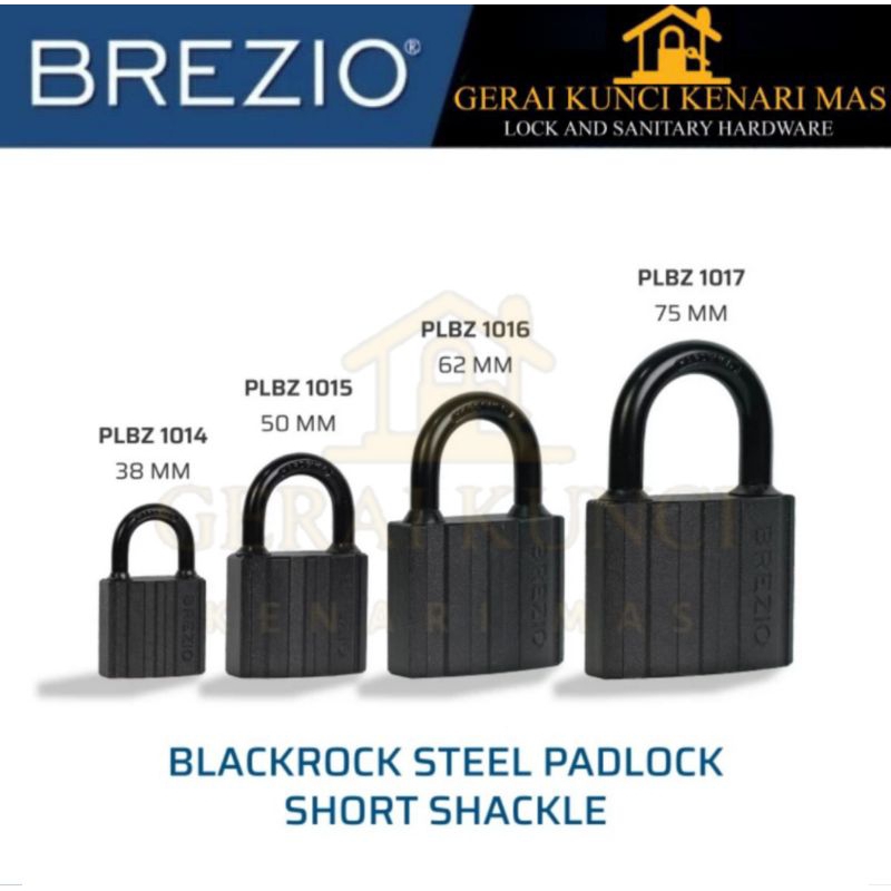 BREZIO Gembok Pagar Kunci Loker Pintu Rumah Blackrock Steel Padlock Hitam Leher Panjang Pendek PLBZ