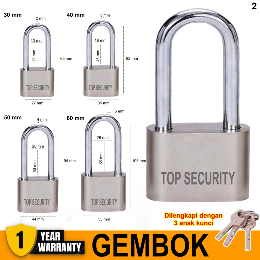 Gembok Panjang 30 mm 40 50 60 Pagar Pintu Rumah Motor Gudang Ruko Kuat Aman Anti Maling Tahan Karat