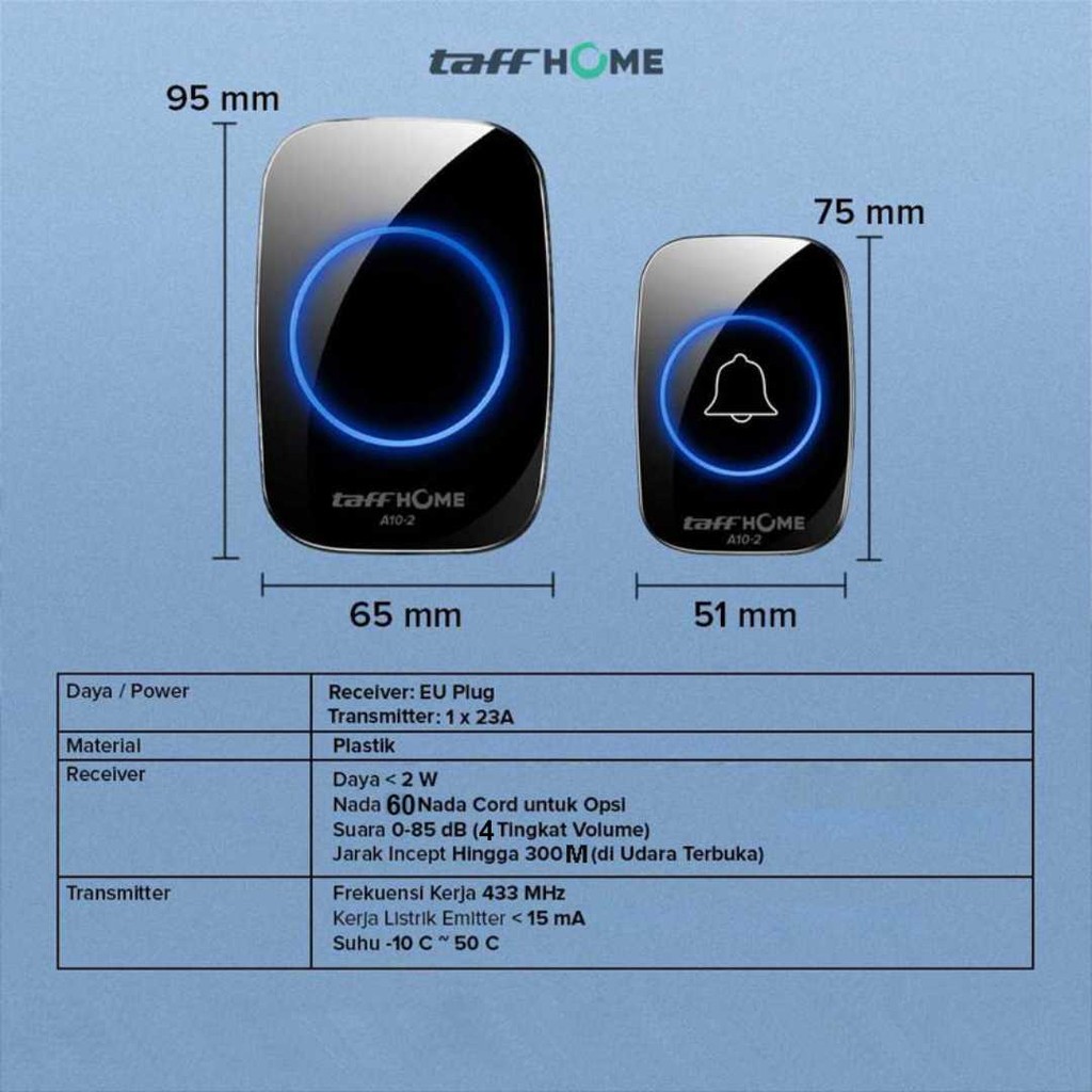 TaffHOME Bel Pintu Wireless Remote Doorbell 60 Tune 2 PCS Receiver - A10-2