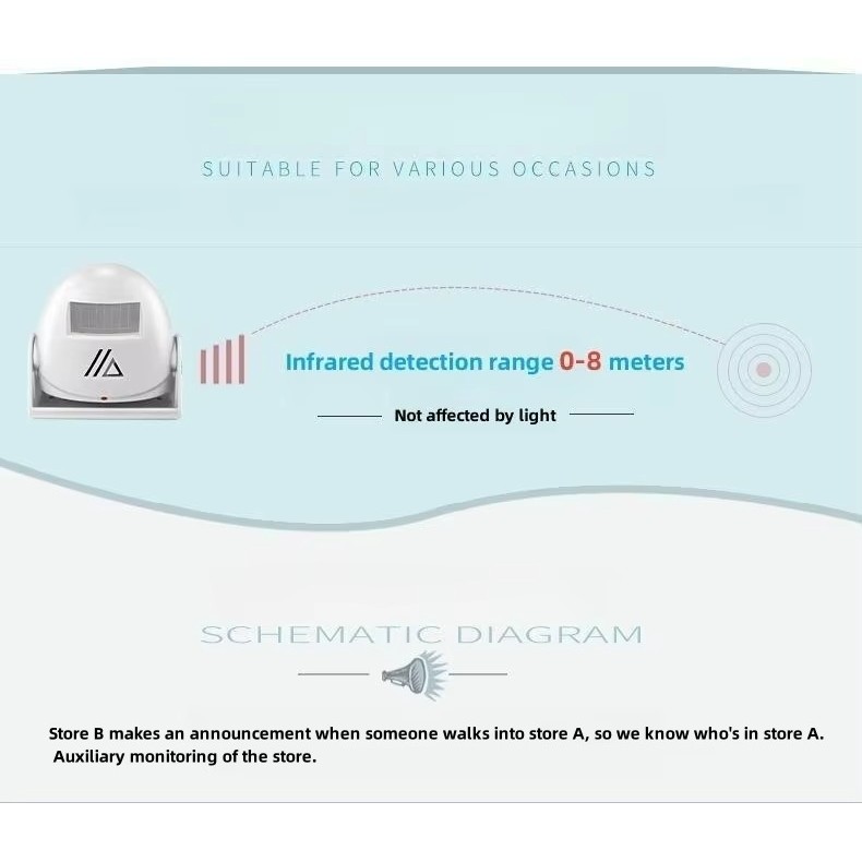 Bel Pintu Nirkabel Alarm Anti Maling, Toko Sensor Gerak Inframerah Bel Pintu