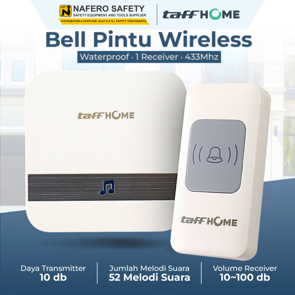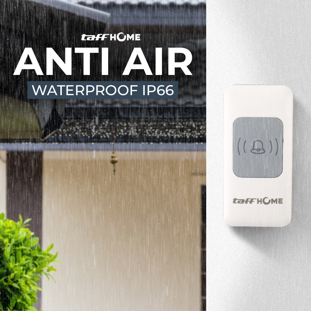 Bell Pintu Wireless TaffHOME Waterproof IP66 Warna Putih Hitam Bell Pintu Wireless Doorbell Waterproof 1 Receiver 433Mhz