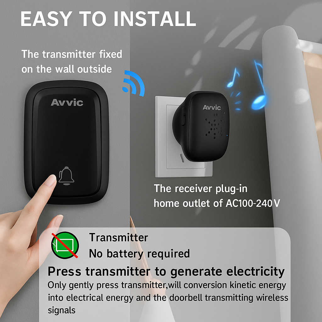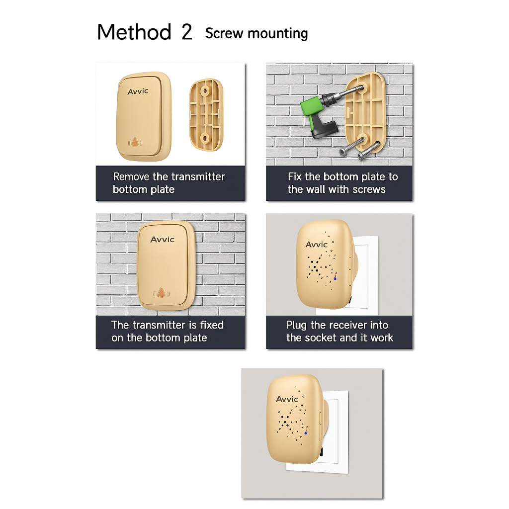 Avvic DB206 Bell Pintu Rumah Wireless Doorbell Waterproof 1 Transmitter 2 Receiver EU Plug 38 Nada