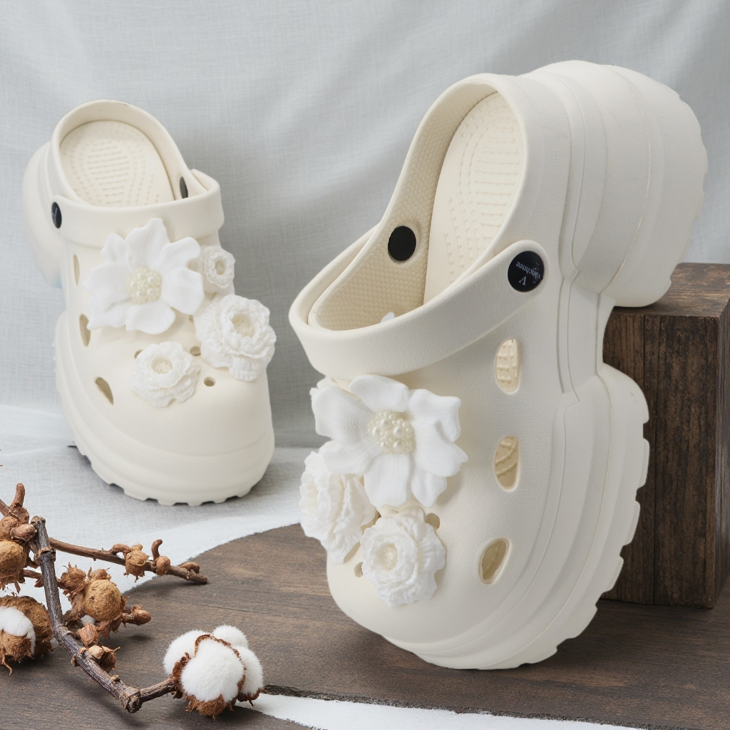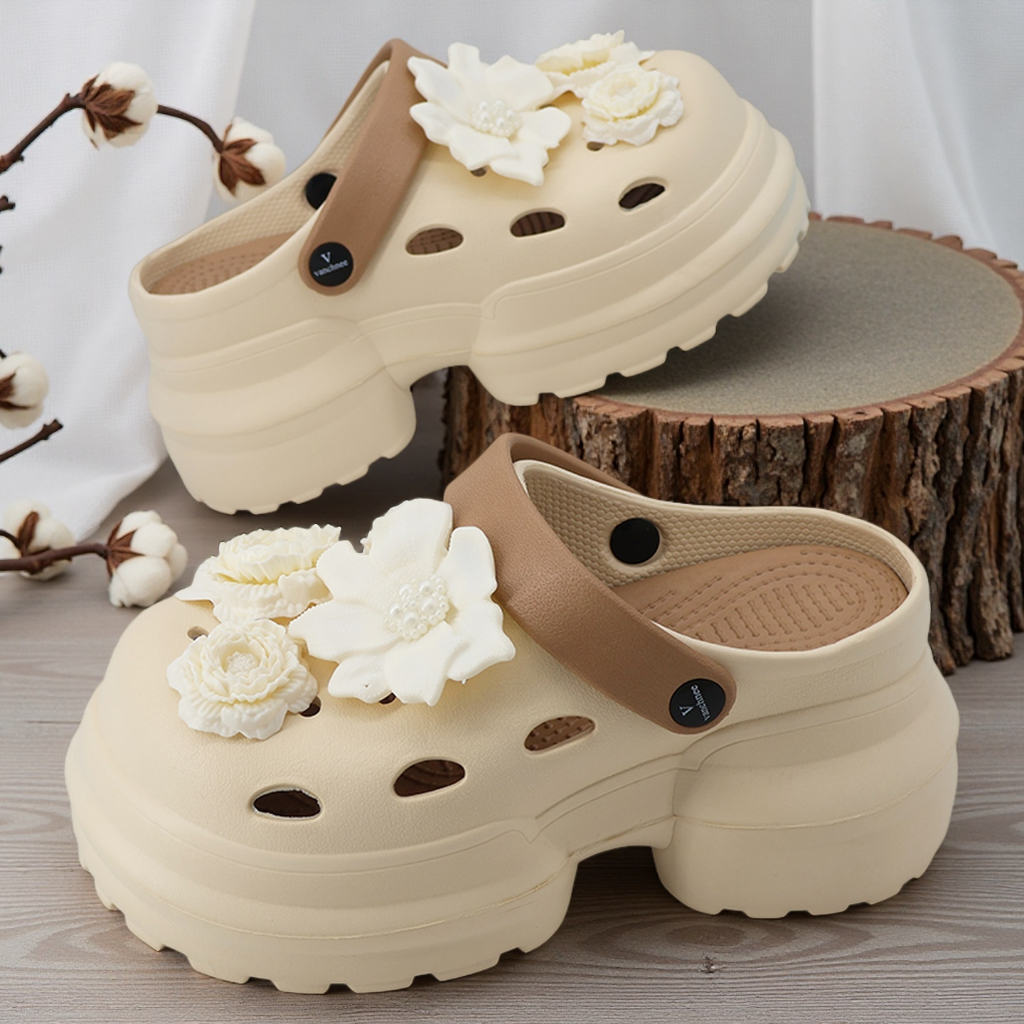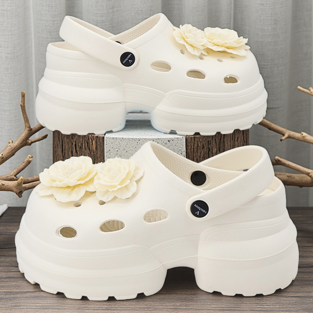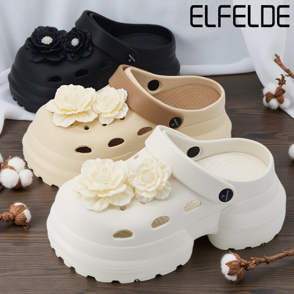 ELFELDE Sandal Kodok Wanita Korea Bunga Sandal Sepatu Jelly Wanita Sandal Baim Wanita Wedges